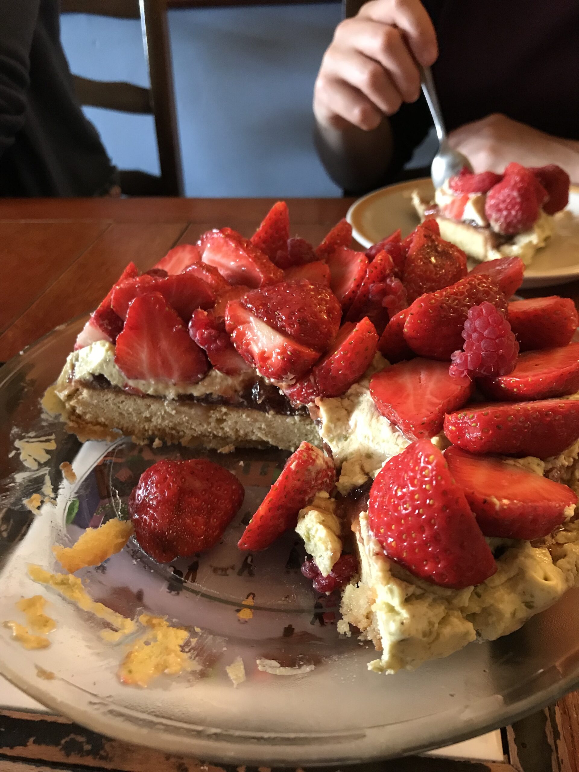 I was really excited when they announced this as the technical challenge on Patisserie week because I had made it already, 2 years ago, on a whim during my sabbatical. The recipe came from Suzue and William Curley’s Patisserie. I can report to you that my sablé dough was too hard, the pistachio paste lacked the pistachio flavour and I bought jam rather than make a raspberry/strawberry confiture. I’ve had a quick glance over the GBBO recipe and noticed the inclusion of pistachio oil and extract. I don’t know where you’d buy that from but I’d get it to produce a stronger pistachio flavour. While you are at it, if you can afford the extra expense, buy shelled pistachios because shelling them takes a tediously long time and your thumbs will hurt after a while.