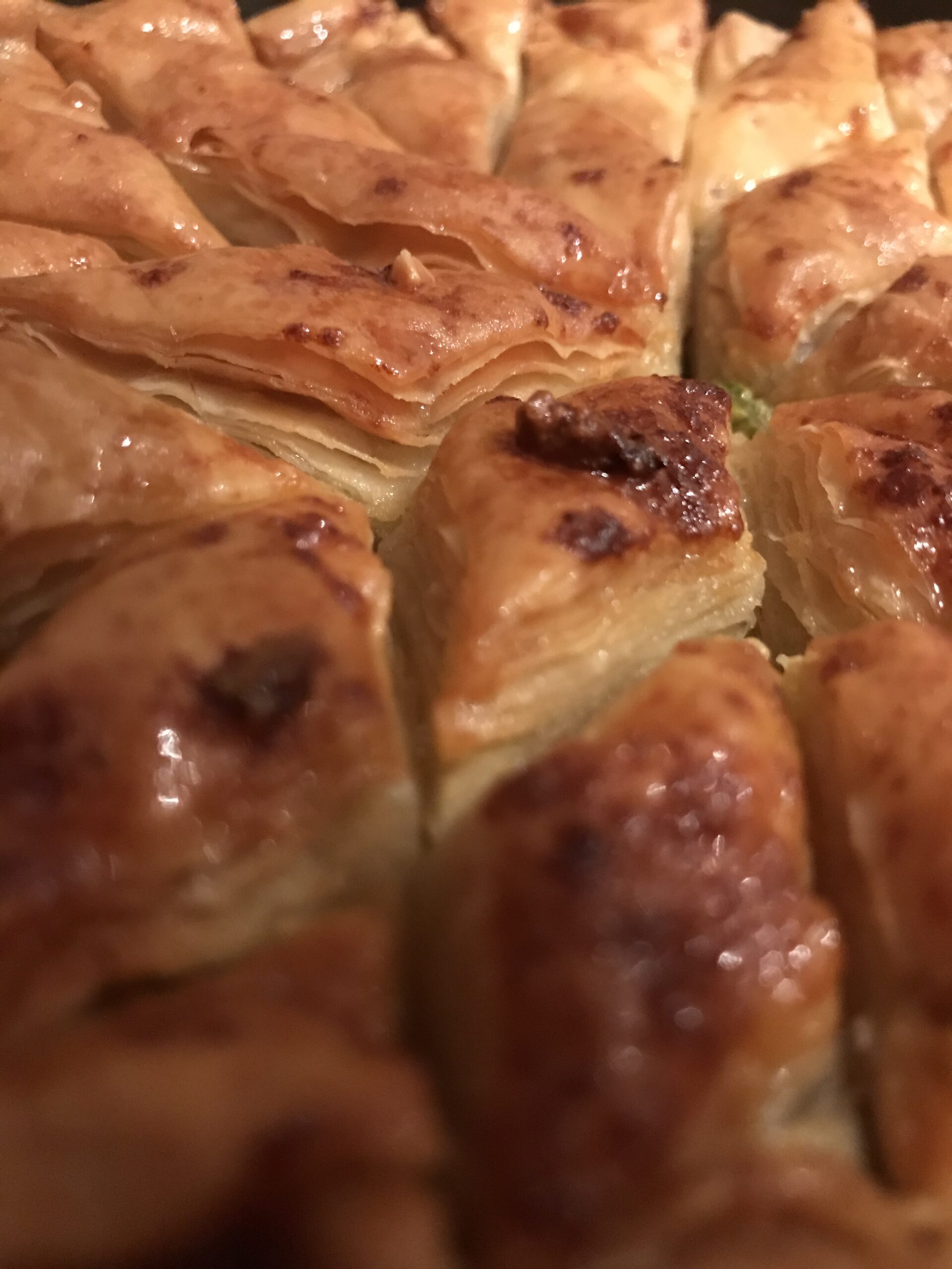 I was really nervous about this one because of the filo pastry. A long time ago, I had tried to make filo. It dried out and the texture of the resulting bake was both stiff and rubbery, an unpleasant combination. I hadn’t seen the method that they use in this recipe and it worked really well.